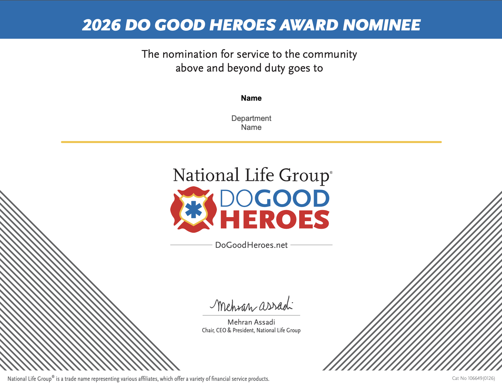 This program is designed to create opportunities for you to repeatedly engage with first responder departments in your market as you work to recognize them as National Life Do Good Heroes. By nominating a department or member, you can build connections with your local community and earn positive press and brand recognition for you, your agency, and National Life to drive sales.