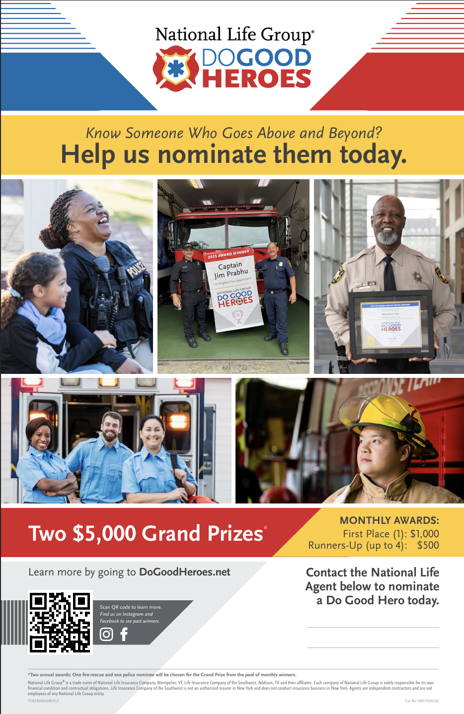 What you can do: If you know a first responder engaging in community service beyond the call of duty, we encourage you to nominate them as a National Life Do Good Hero today.